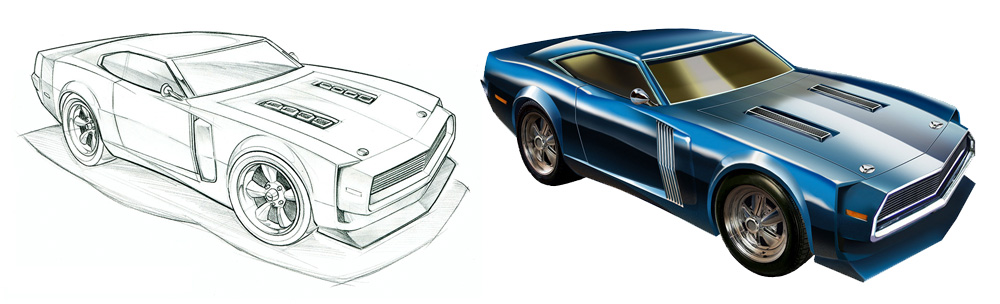 When Universal Studios needed original art for their new The Fast and the Furious merchandising guide they knew who to call. Scrambled Eggz was the obvious choice due to their long history of vehicle design, development and illustration. Please scroll down to view our process.